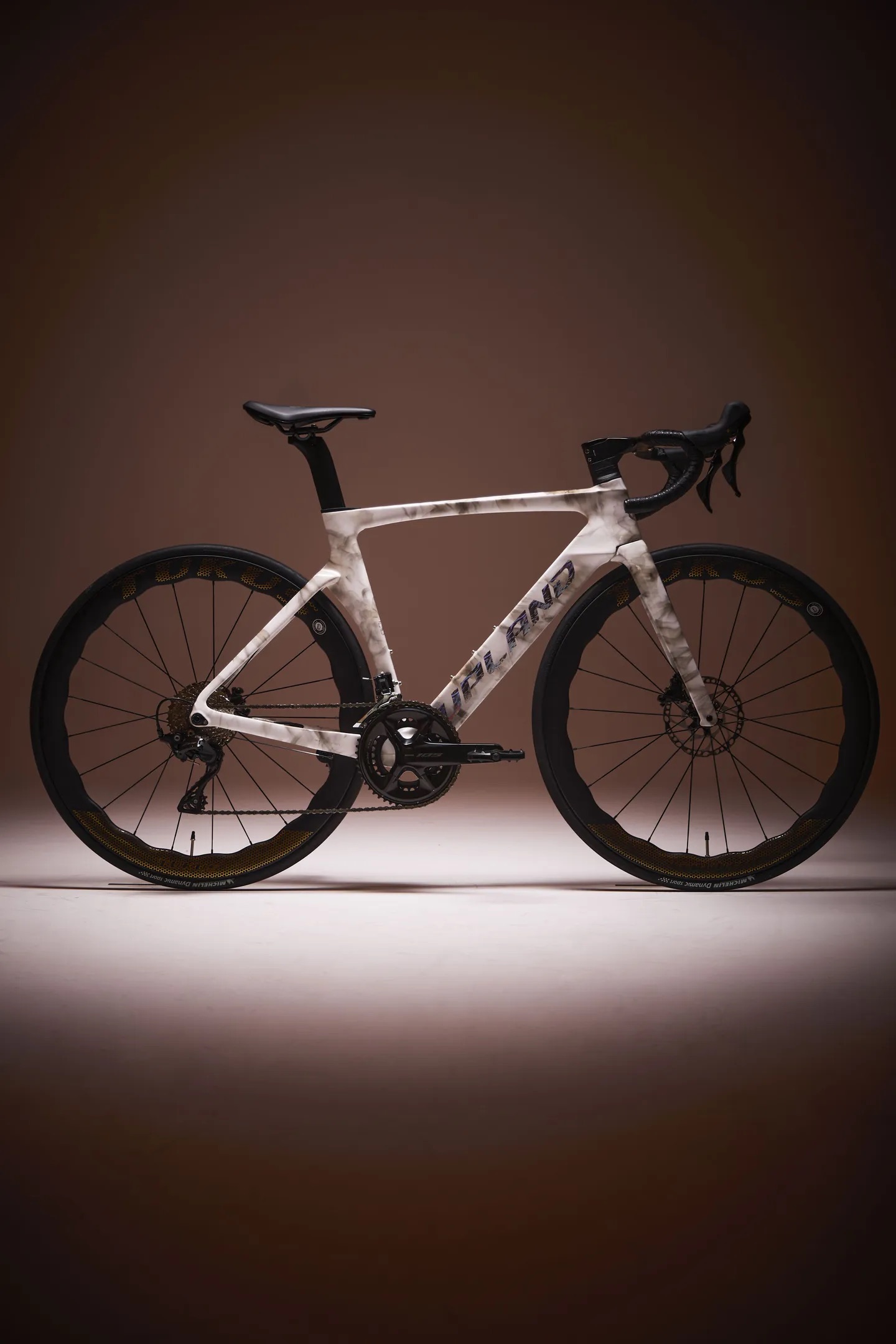 Wheelset: For white framesets: Mutech Breeze 50 Dazzling White Carbon Wheel with steel spoke